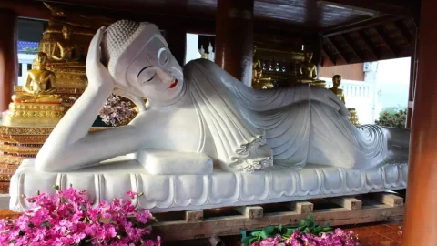 พระพุทธรูปหินขาวที่งดงาม ศิลปะที่นำเข้ามาจากประเทศพม่า